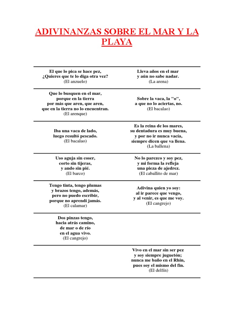 Adivinanzas Sobre El Mar Y La Playa