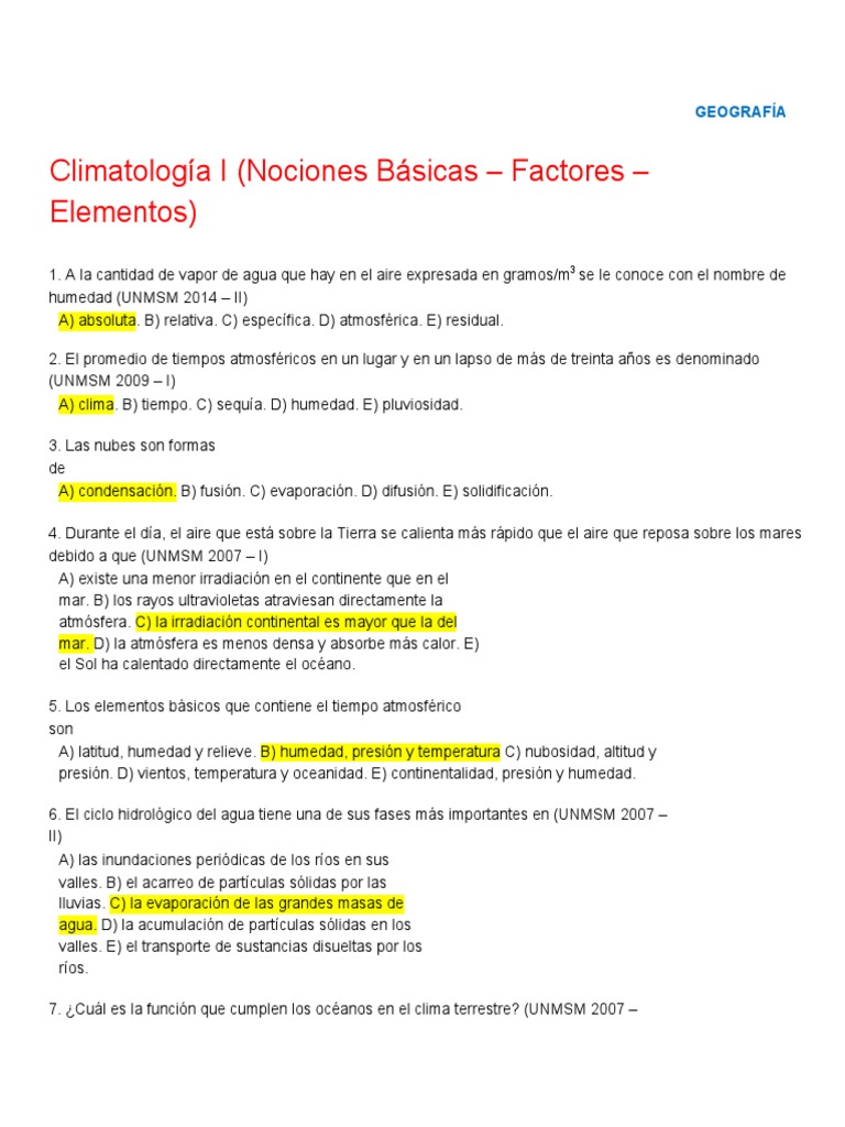 Examen Geografia El Tiempo Y El Clima
